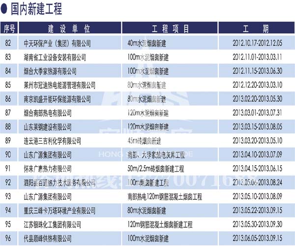 宏順建設(shè)工程有限公司是國(guó)家批準(zhǔn)成立的專業(yè)高空作業(yè)企業(yè):承攬過(國(guó)內(nèi).國(guó)外)煙囪新建、煙囪防腐、磚煙囪新建、煙囪改造、煙囪維修、煙囪脫硫防腐、煙囪拆除加高、煙囪滑膜等高空作業(yè)工程。具有“不搭腳手架 、 不需要停產(chǎn)”施工特點(diǎn)。